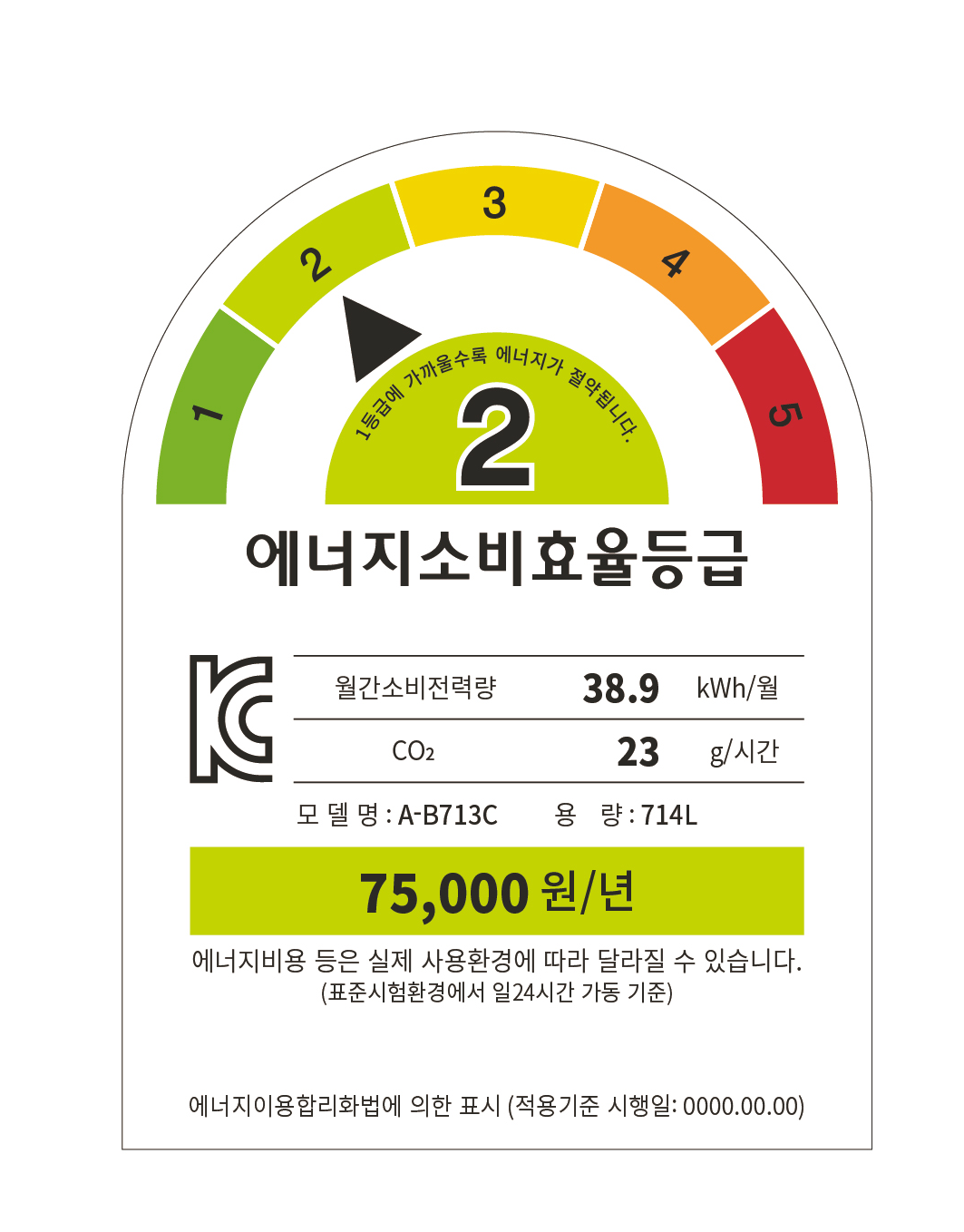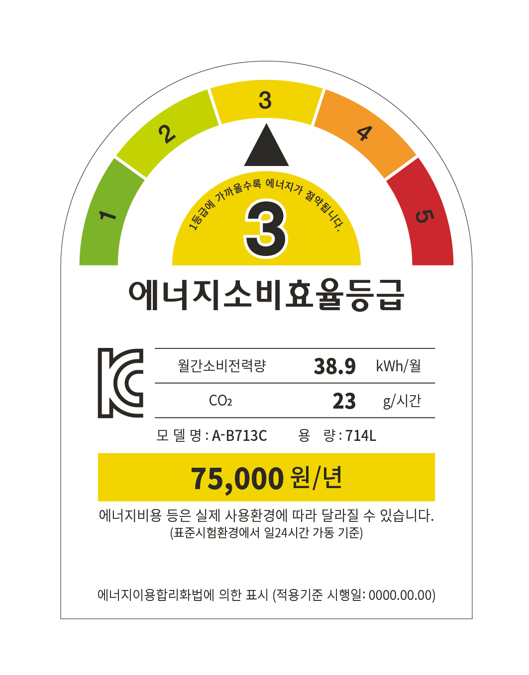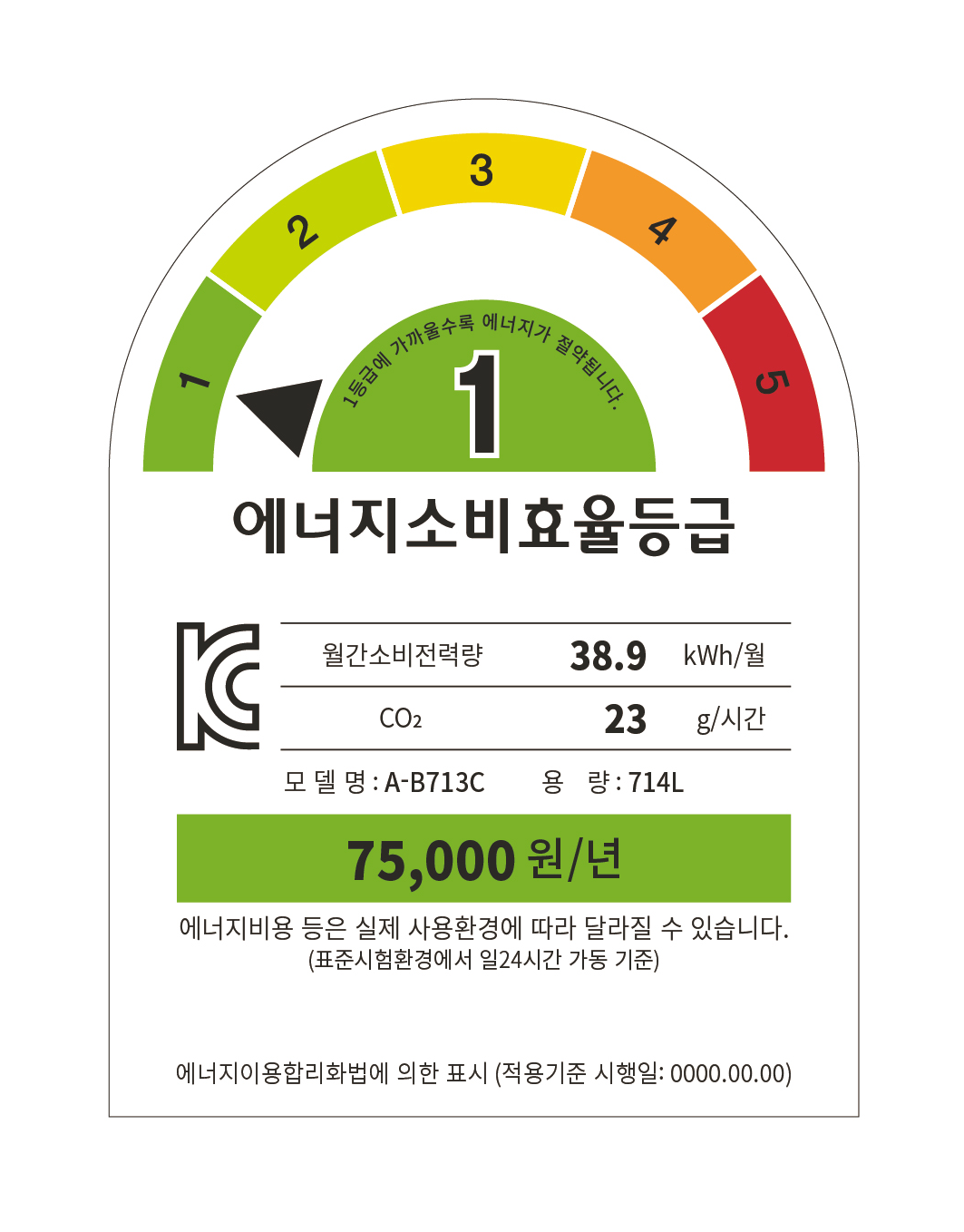 등급은 1~5단계로 표기되며, 실제 에너지 사용시간 또는 전기 요금 인상 등 에너지 가격 변동에 따라 달라질 수 있습니다.